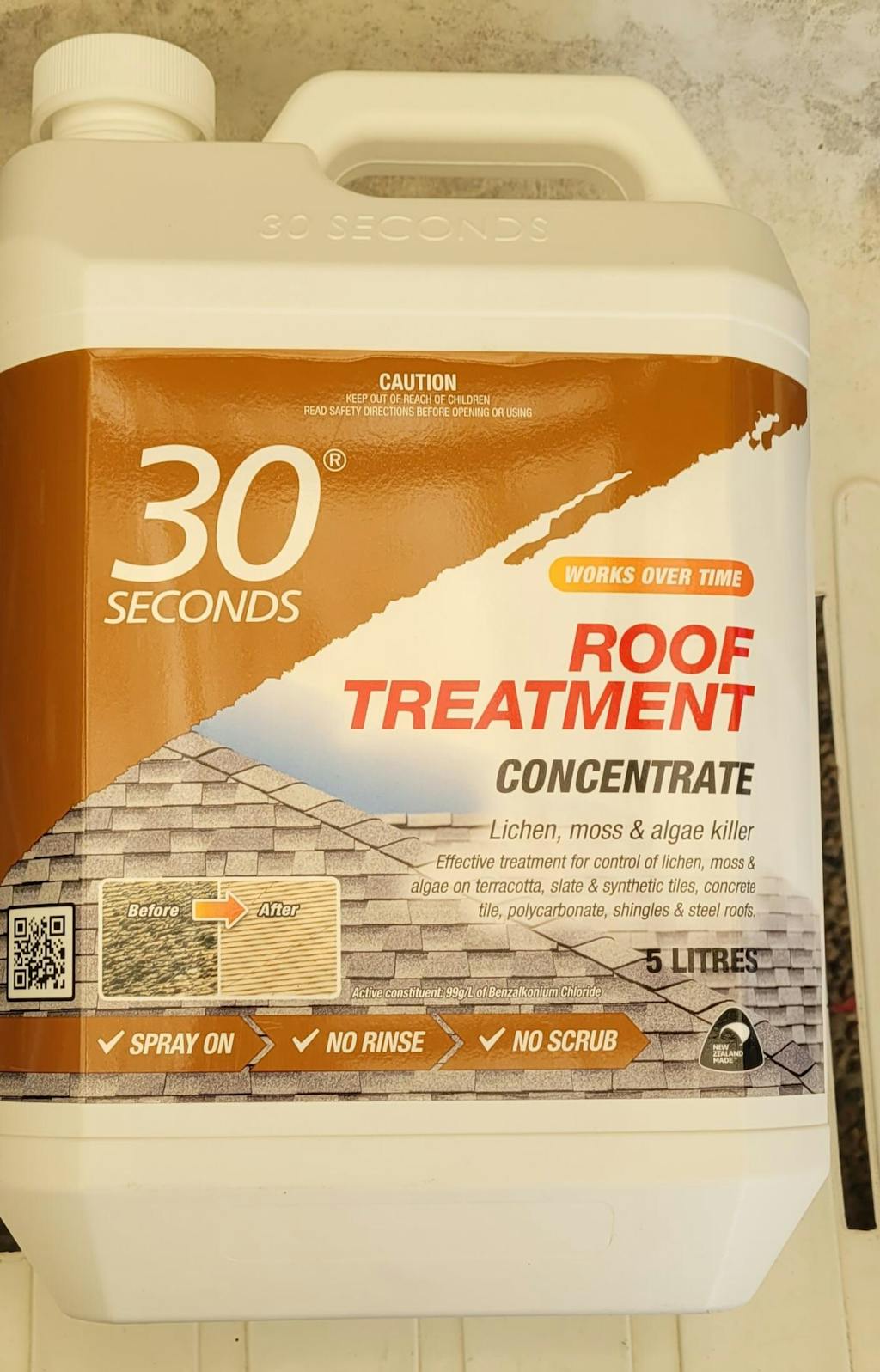 This cost effective, non bleach based roof cleaner can be used to treat most types of roofs & surface types. 30 SECONDS® Roof Treatment: Can be used on a variety of roof surfaces including clay tile, concrete tile, deterministic, colour steel, super 6, slate, synthetic tiles, poly-carbonates.